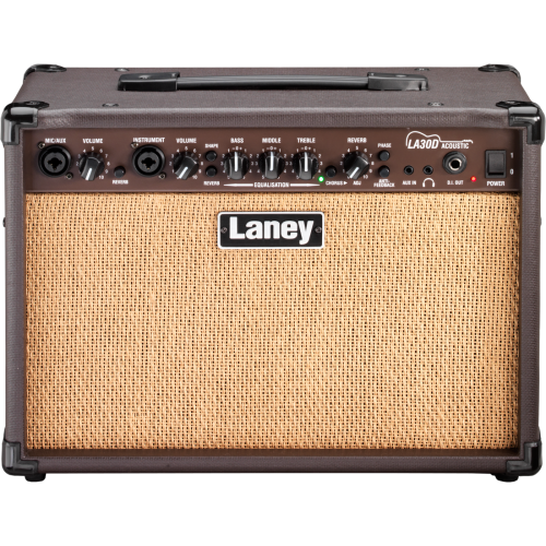 Laney LA30D - профессиональный акустический комбоусилитель мощностью 30 Вт. Широкий акустический диапазон с 3-х полосным эквалйзером, также установлен модуль эффектов реверберации и хоруса. LA30D имеет 2 независимых канала для микрофона и инструмента, оба с выбором XLR/Jack. Комбоусилитель обеспечивает полное, естественное акустическое звучание.