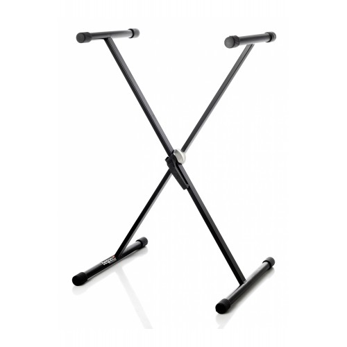Bespeco CROCSLS - X-образная металлическая стойка для клавишных инстументов с нейлоновым рычагом регулировки высоты и центральным узлом с системой CROCODILE. Ножки прорезинены для дополнительной устойчивости.
